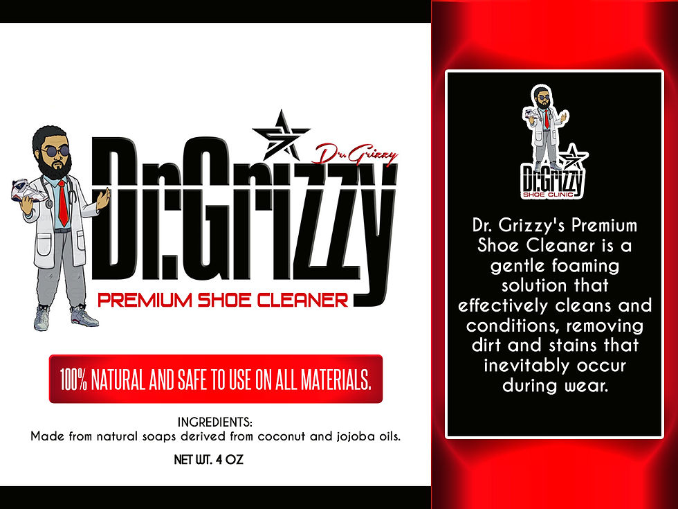 (1) Bottle of Dr. Grizzy's Premium Shoe Cleaner, and (1) Dr. Grizzy's Microfiber Towel